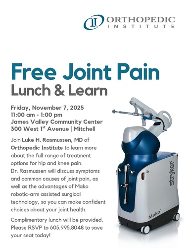 Join Luke H. Rasmussen, MD of Orthopedic Institute to learn more about the full range of treatment options for hip and knee pain. Dr. Rasmussen will discuss symptoms and common causes of joint pain, as well as the advantages of Mako robotic-arm assisted surgical technology, so you can make confident choices about your joint health.